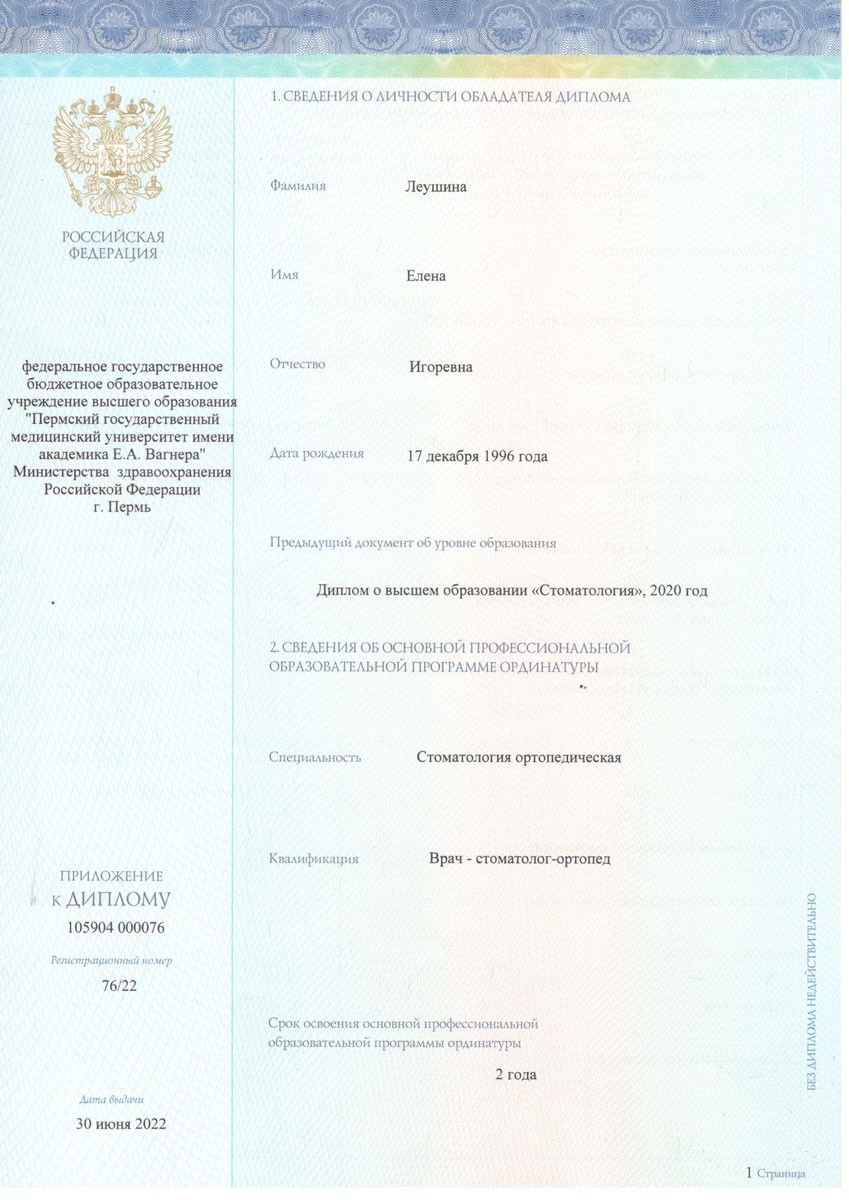 Об окончании ординатуры ГБОУ ВПО ПГМА имени академика Е.А.Вагнера от 30.06.2022г.